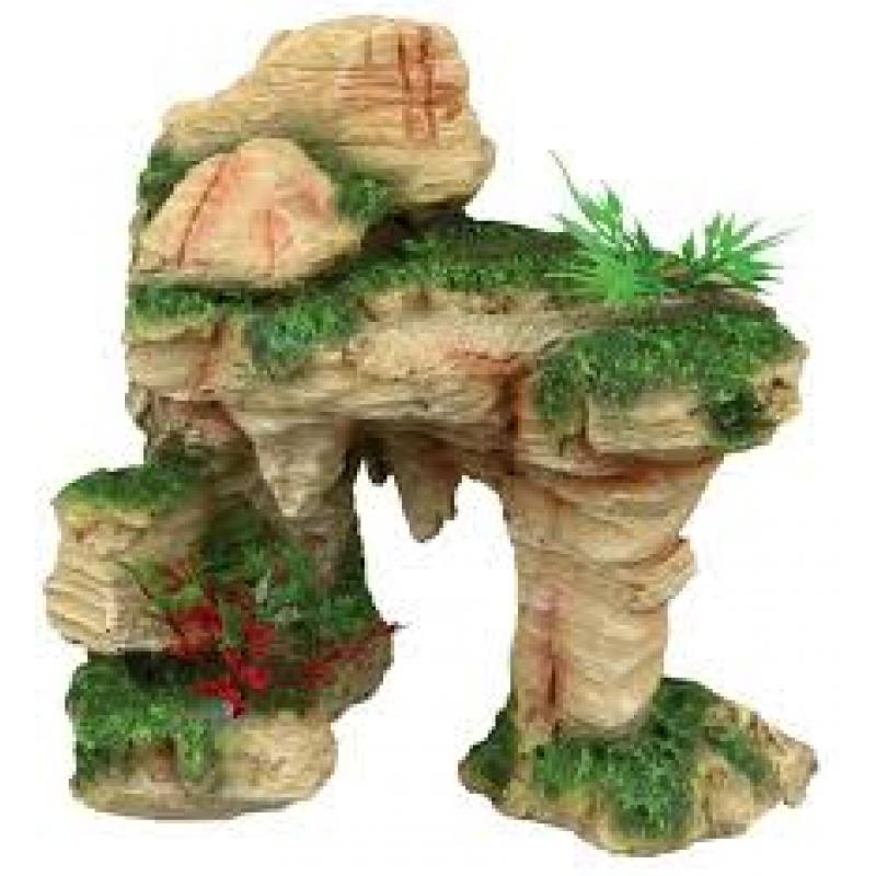 Декорация для аквариума "TRIXIE", "Скала" 19см, -полиэфирная смола, -устойчива к соленой воде, -с пластиковыми растениями -не влияет на качество воды.
