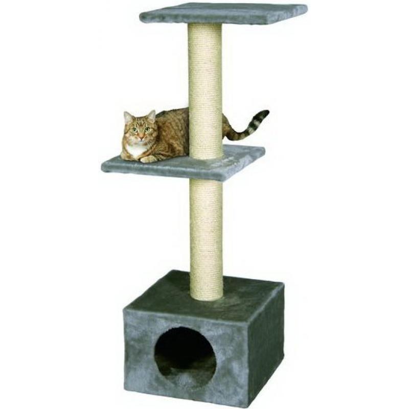 Дом-когтеточка с домиком и двумя полками. Размер: 35х35х103см. Цвет: серый. Материал: плюш с сезалевым канатом.